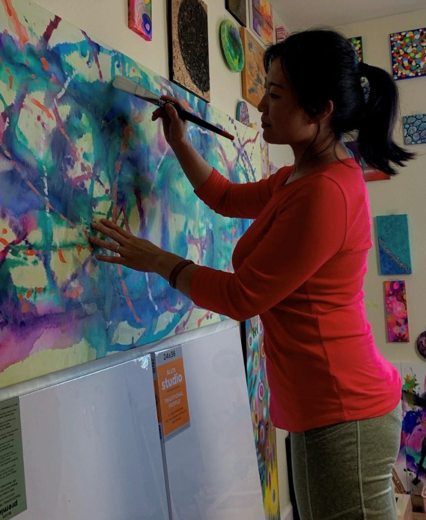 Hi, I am Anna Gledhill, a contemporary abstract artist based in Southern California. The beauty of nature is my inspiration. I don’t paint what I have seen, I paint what I feel from this world. I love to explore different mediums and find the best color combinations that speak for me. I let color flow and form on its own. Feel the freedom of intuition, then I add circles, swirls, dots and lines to express myself and my deepest feeling. I combine philosophy and science in my painting to build a connection between us and the universe. There is so much darkness and sorrow in this world, I hope my art is a source of good vibes for people, bring the peace and love to the world.