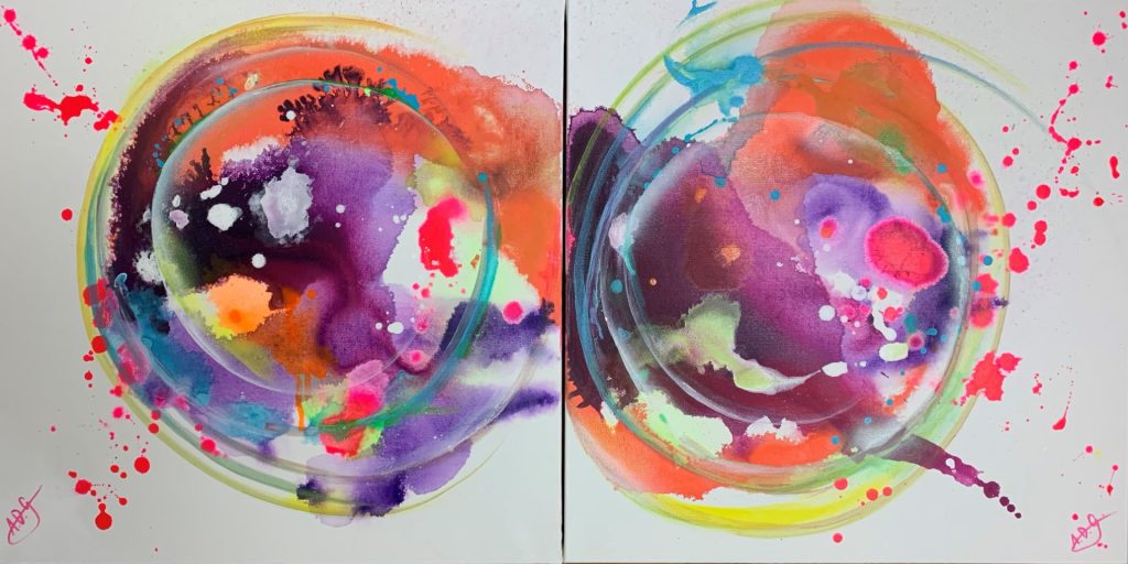 Hi, I am Anna Gledhill, a contemporary abstract artist based in Southern California. The beauty of nature is my inspiration. I don’t paint what I have seen, I paint what I feel from this world. I love to explore different mediums and find the best color combinations that speak for me. I let color flow and form on its own. Feel the freedom of intuition, then I add circles, swirls, dots and lines to express myself and my deepest feeling. I combine philosophy and science in my painting to build a connection between us and the universe. There is so much darkness and sorrow in this world, I hope my art is a source of good vibes for people, bring the peace and love to the world.